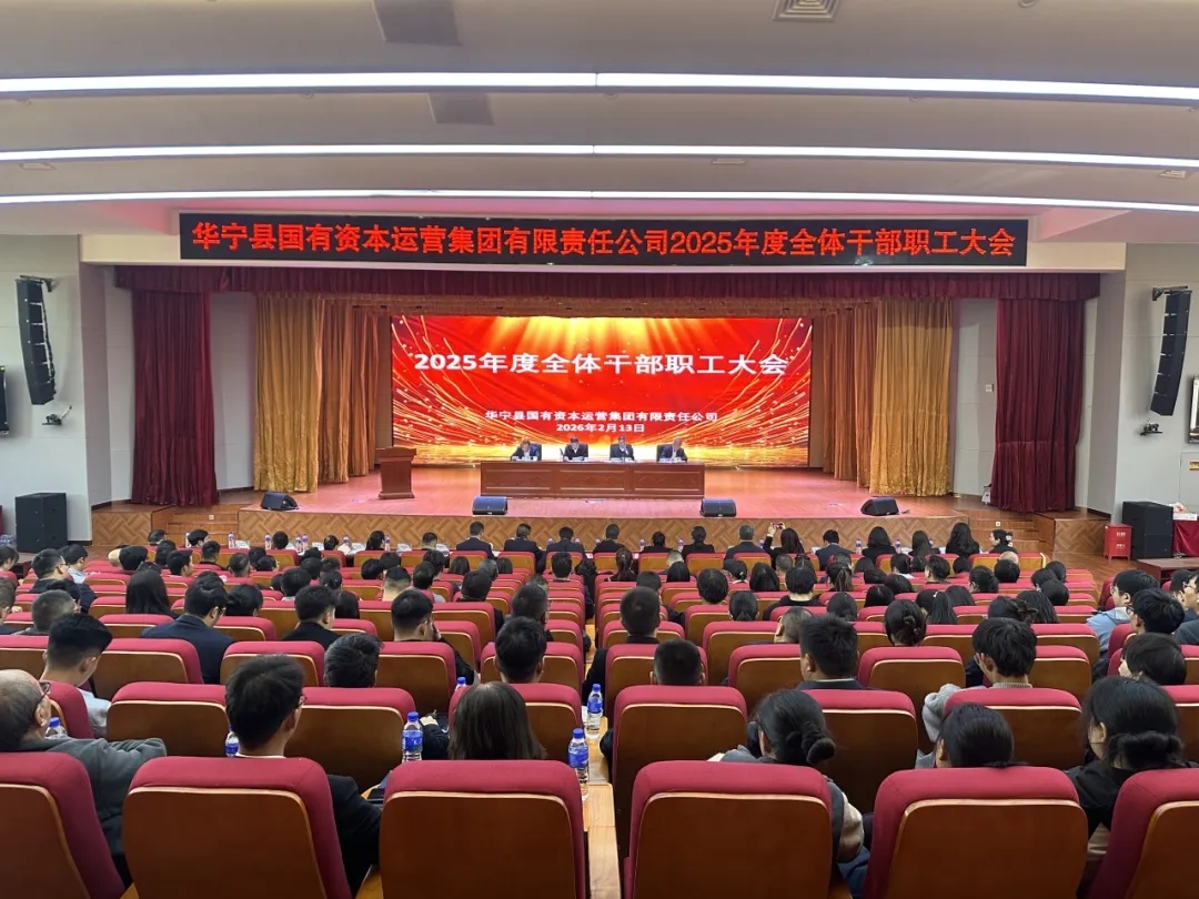 2026年2月13日,华宁县国有资本运营集团有限责任公司召开2025年全体干部职工大会,系统总结过去一年工作,分析当前形势,部署2026年重点任务,动员全体干部职工坚定信心、接续奋斗,共同开启高质量发展新篇章。集团公司董事长出席会议并讲话。集团公司总经理主持会议。