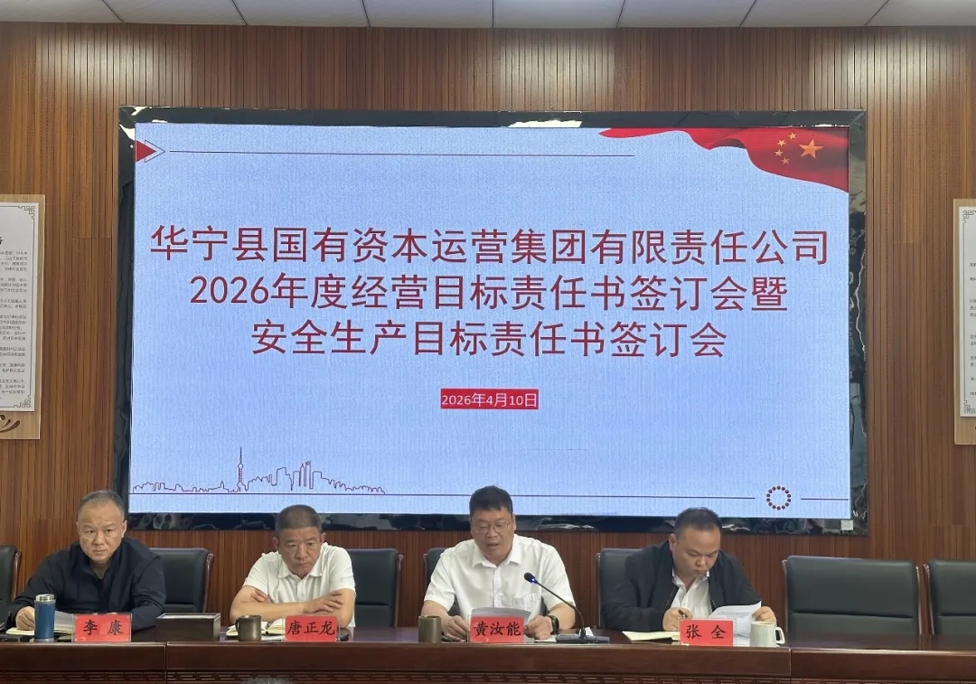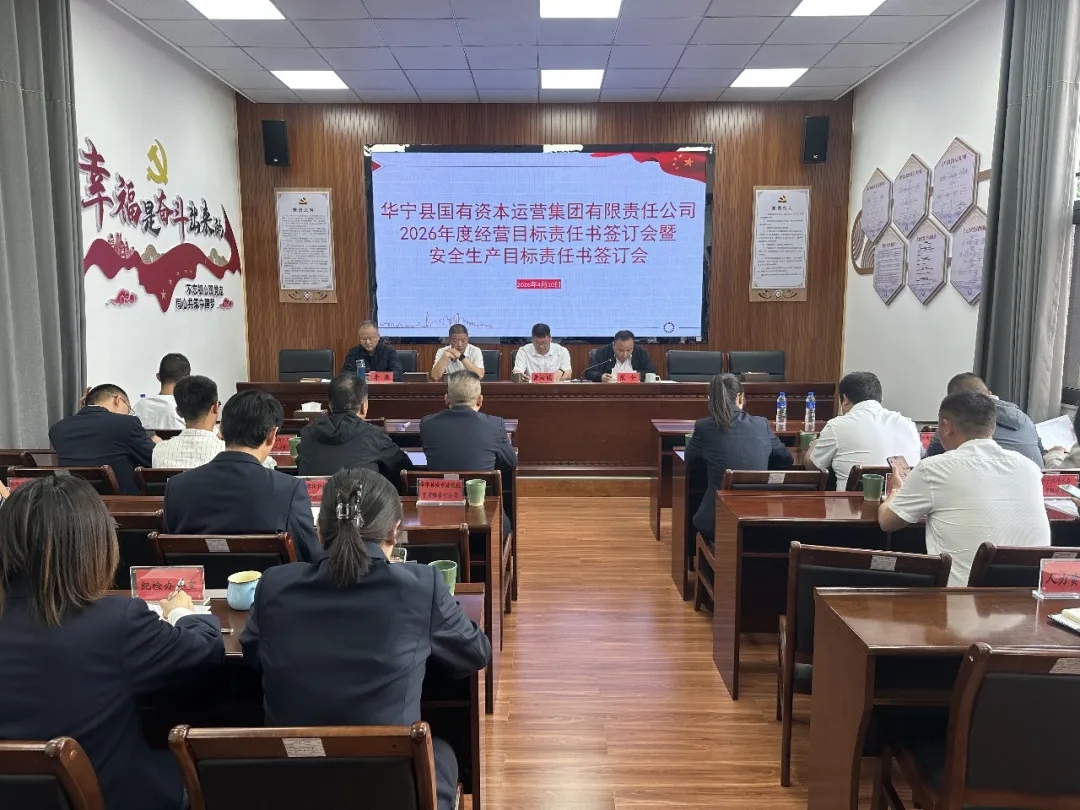 4月10日上午,华宁县国运集团公司召开2026年度经营目标责任书与安全生产目标责任书签订会议。会议由县国运集团副总经理主持,集团领导班子成员、相关所属企业负责人及涉及部门负责人参会。